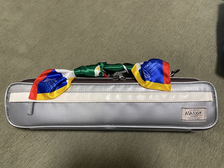 スタッフの一人は、フルートを吹くのでこんな風にフルートケースに結んだりも。