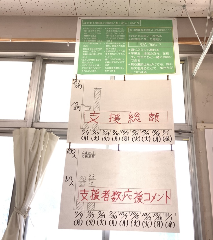 この度は「横浜市立本郷台小学校創立50周年を記念して花火を打ち上げたい!」のプロジェクトを応援下さり、ありがとうございます。おかげさまで、9月6日(金)14時に開始したクラウドファンディングは、13日目で目標金額を超えるご支援をいただきました。また、たくさんのコメントもいただき、本当に多くの方々から応援していただいていることを実感しています。