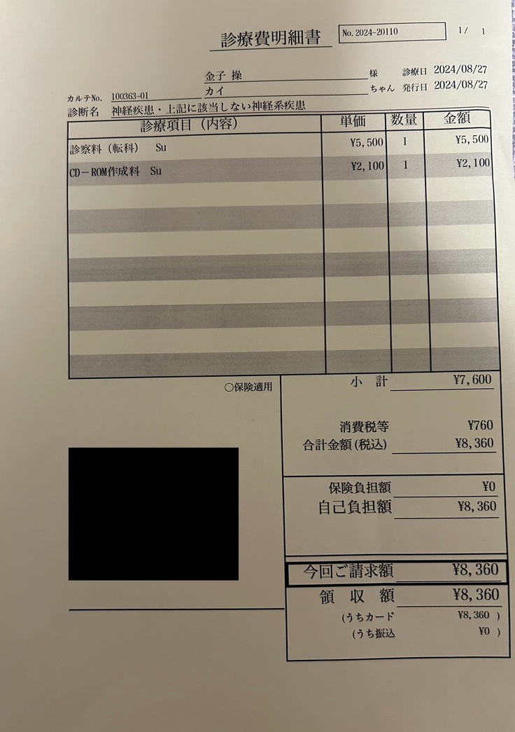💫上記診療費明細書等の氏名は受診したのが母なので、母の名義になっています。