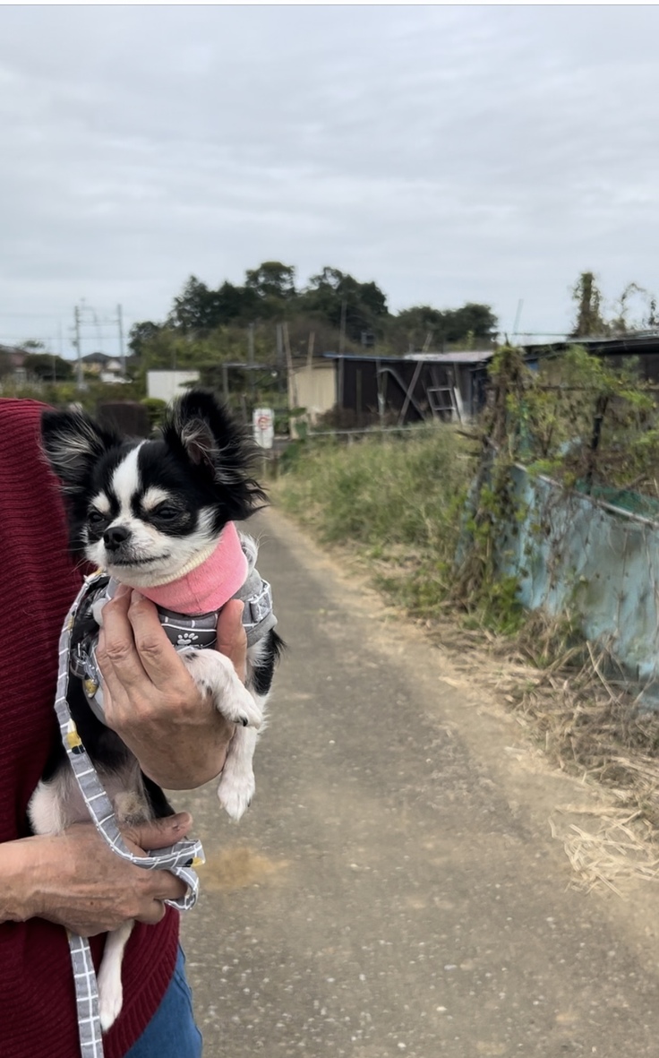 先日の20日の病院受診の時に、「だっこでならお散歩していいよ」と先生から言っていただいたので、今日は家の周りをぐるっと15分。
