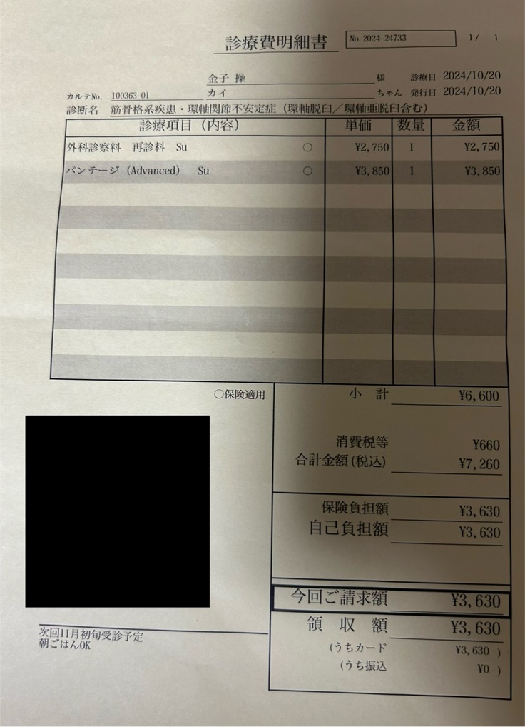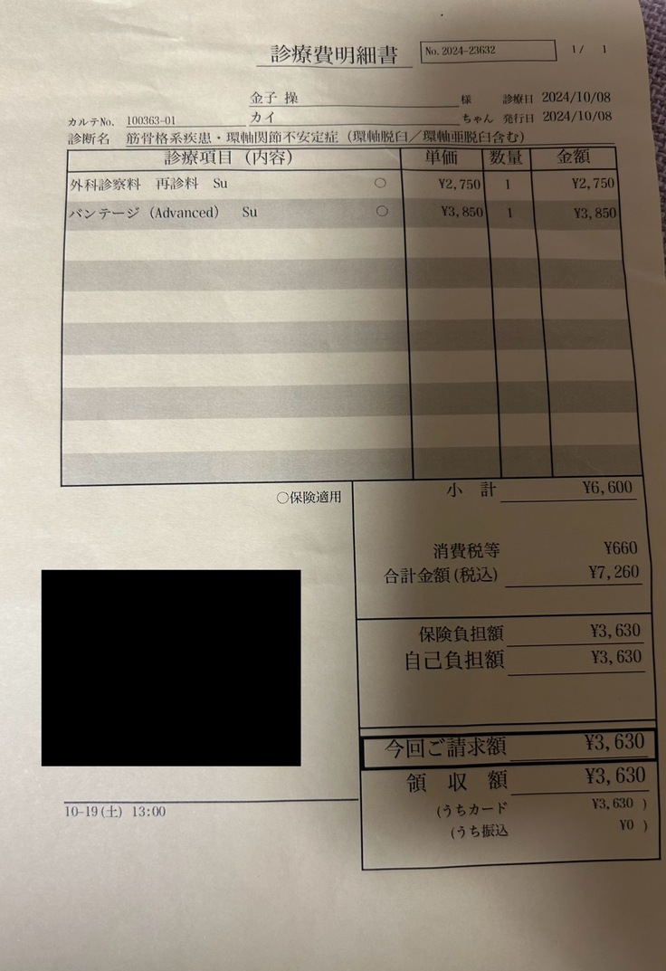 術後の診察等の費用について前回(9/24)の続きを報告させて頂きます。