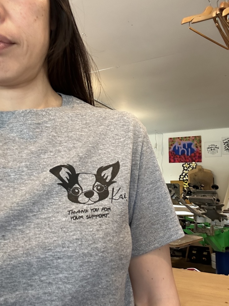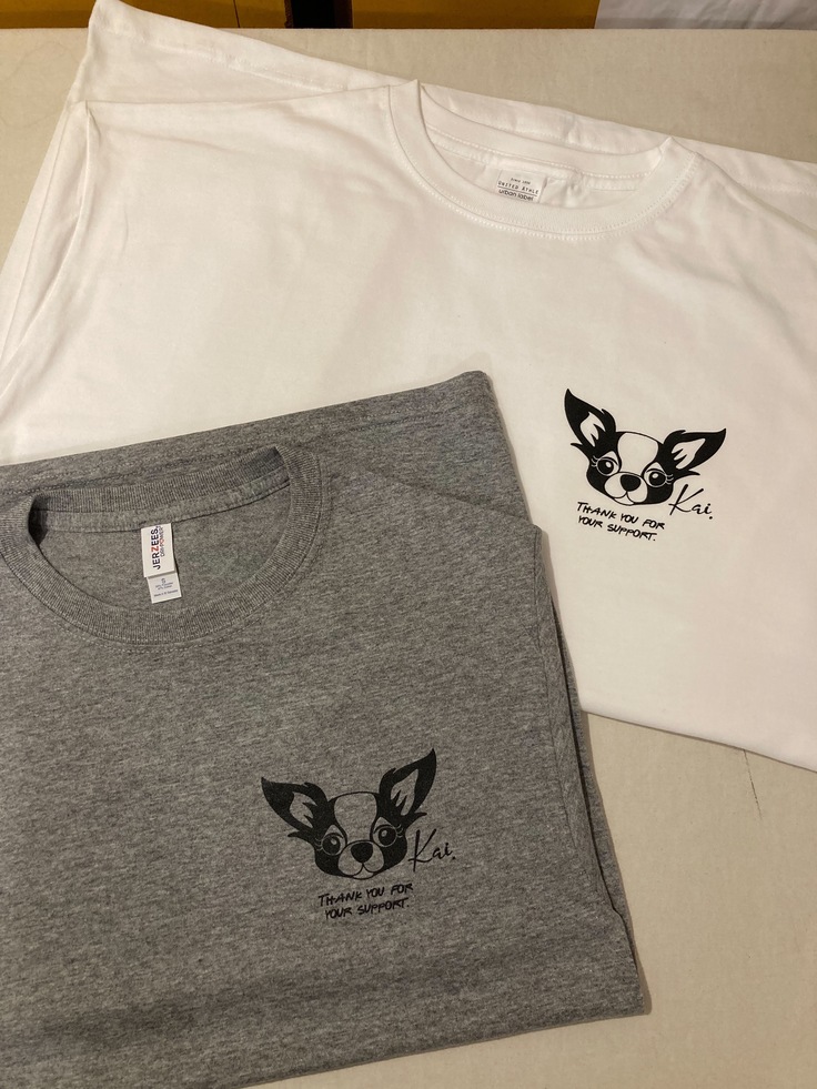 カイのオリジナルTシャツを着てニコニコがとまりません☺️🐶☺️