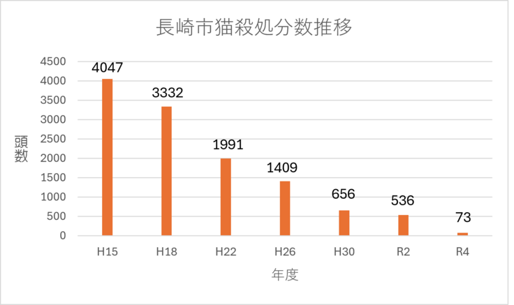 活動の甲斐もあって、長崎市の猫の殺処分は減少しています。