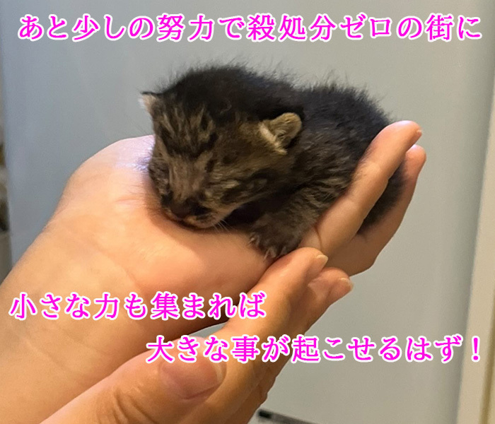あともう一歩、もう一つステップを上がれば成し遂げられる「殺処分ゼロ」を皆さまのお力で達成させて下さい。どうか「子猫たちにも」あなたのお力をお貸しください。