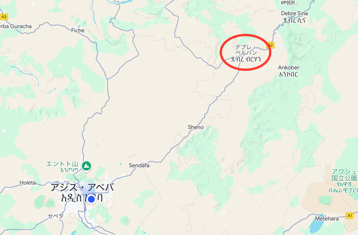 首都アディスアベバから130km離れたDebre Berhanの難民地区にある簡易学校へと変更しました。