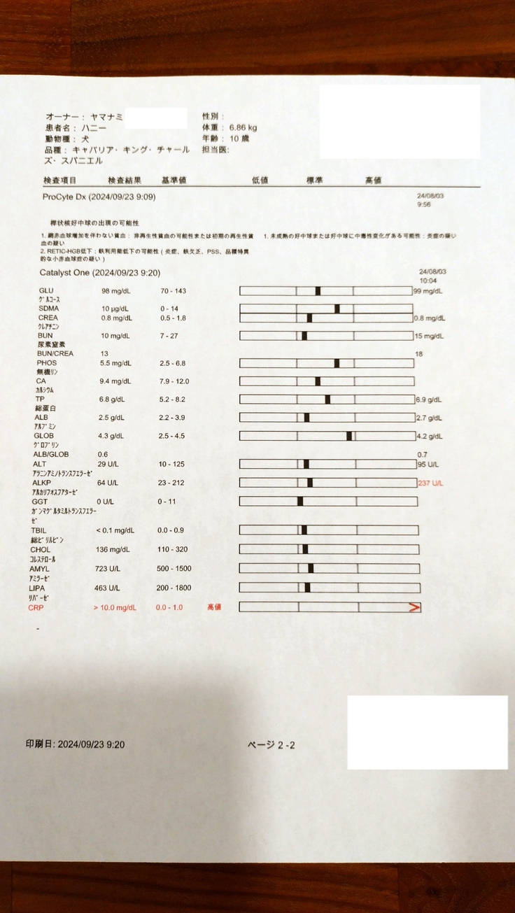 血液検査でCRPの値も10を超え振り切れて測れなくなっている程…相当辛いと思う…、、、