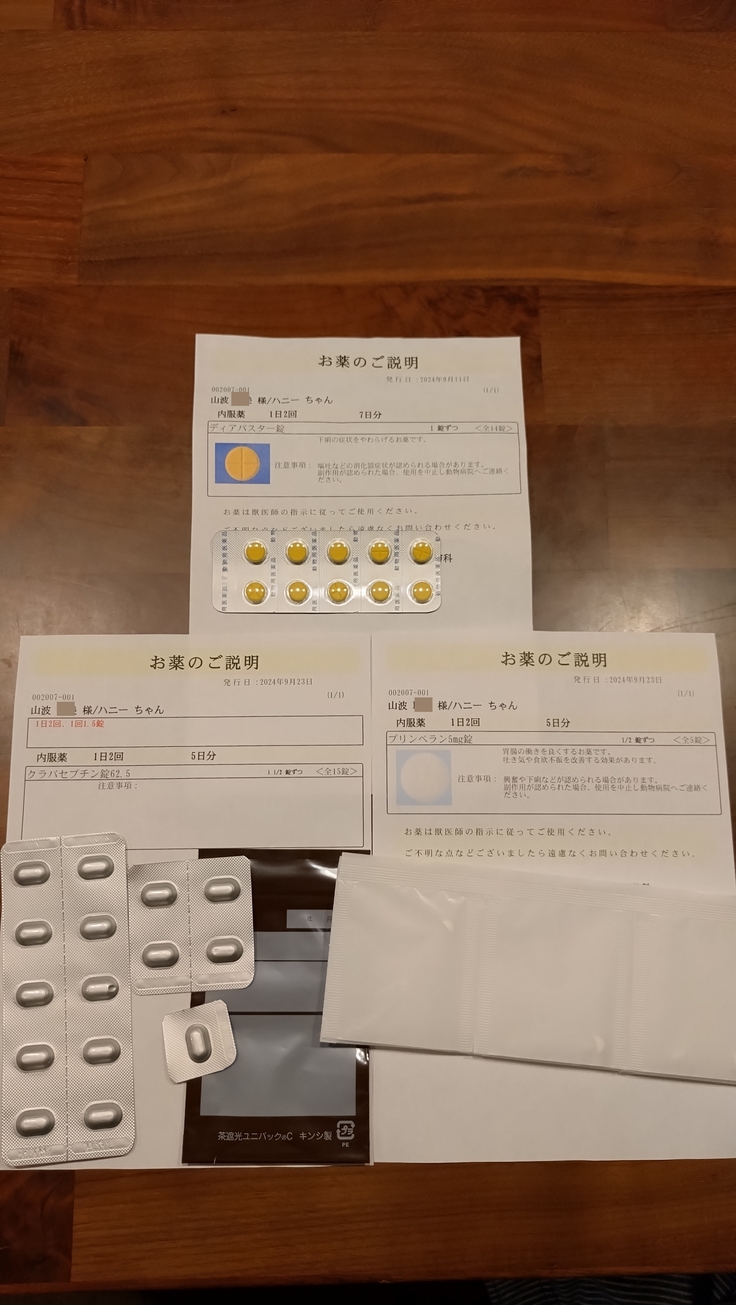 病院終わった後、ハニーが大好きなソフトクリームを買って食べさせてあげた。(主治医には確認済)帰ってからは点滴が効いてくれて、ふやかしたカリカリ20グラムくらいとお刺身の鰹を焼いて混ぜてあげたら食べられた。