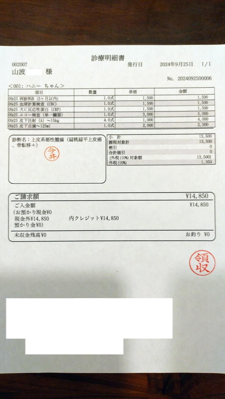 でも、今のハニーの体力では外科手術はおろか、抗がん剤だって負担になりすぎる。。。