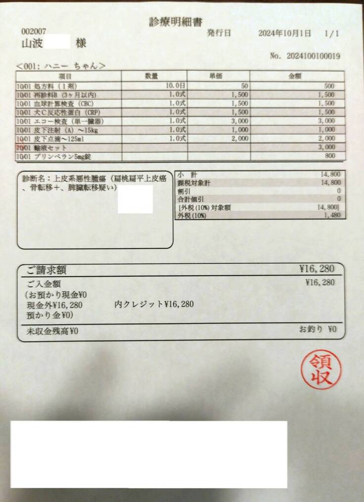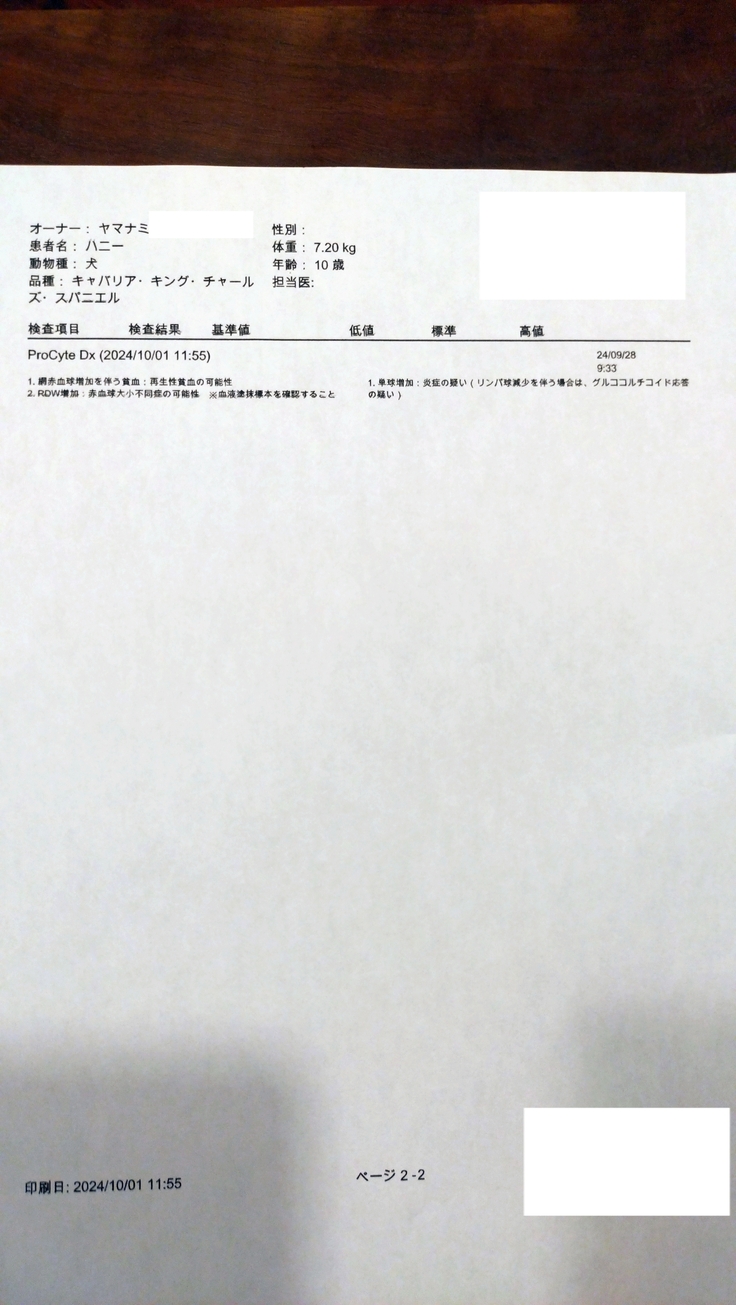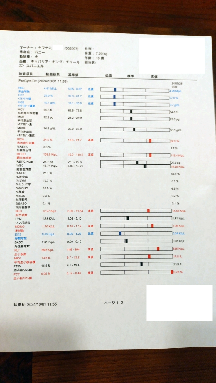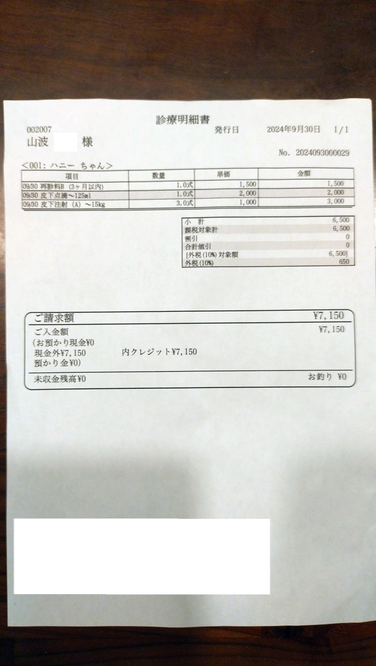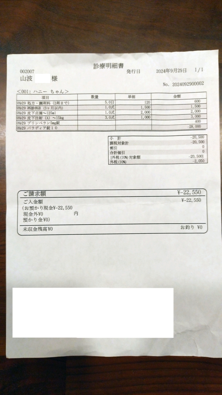 9月29、30、10月1日ハニーかかりつけ受診しました。