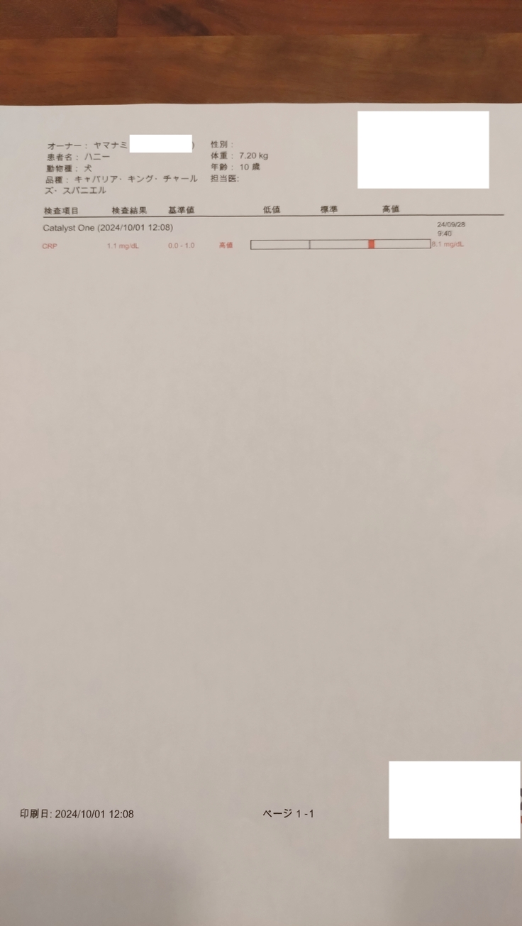30日、ハニー、この日もパパと病院で点滴、CRP4.3まで下がりました!