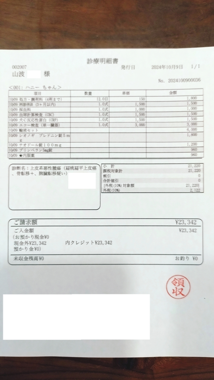 10月1日に受診して以降、2日に1回の自宅での点滴処置と内服で、波はあるものの比較的体調が安定していたハニー🥺