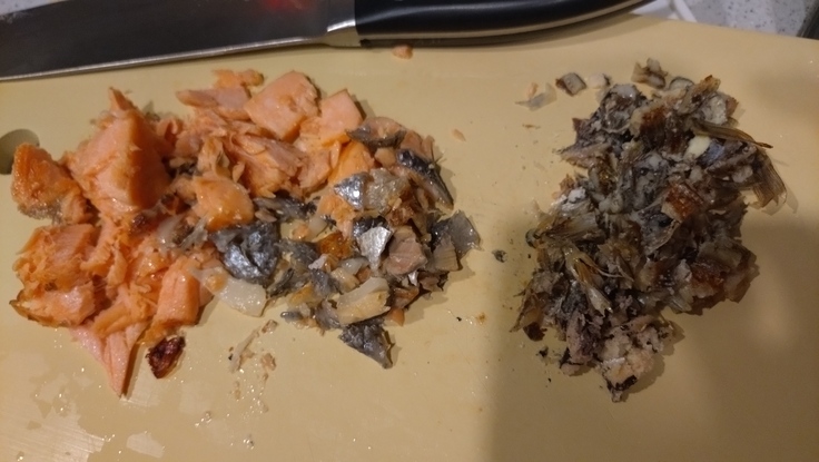 鮭とししゃもなら食べるかと思い、焼いて細かく刻んであげたら食べてくれた!!