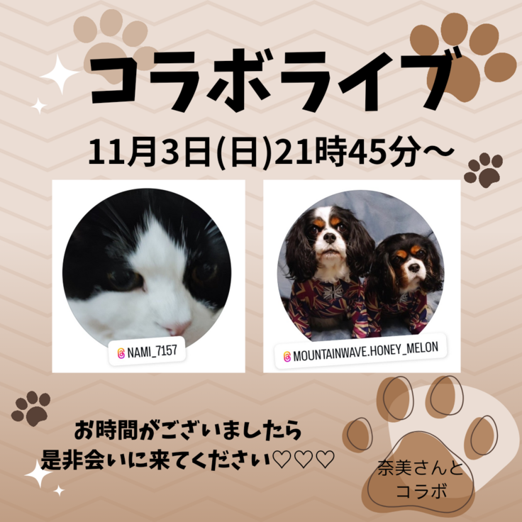 本日11月3日(日)21時45分からインスタLiveをします!