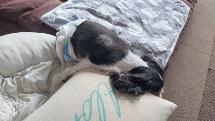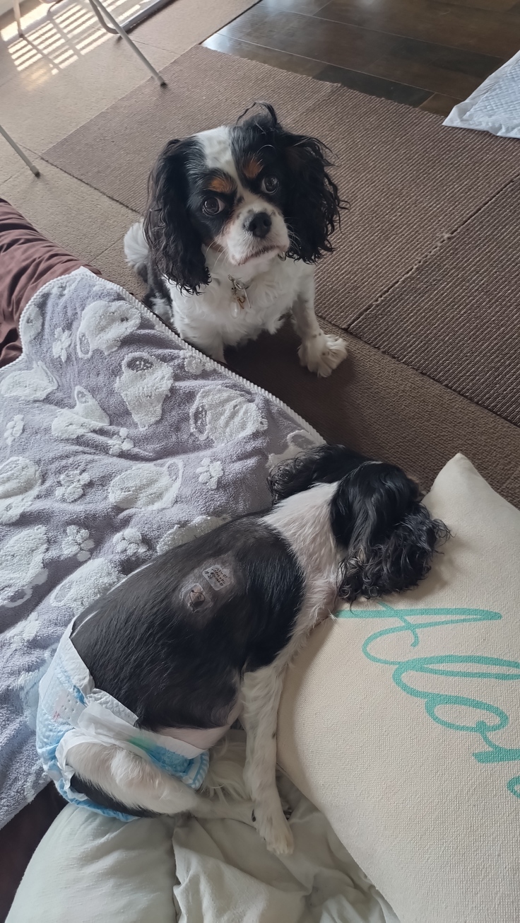 18時トイレシートに連れて行く時に、足が痛くて抱いた時にキャンとないた😭ごめんね、、、痛いよね…😢