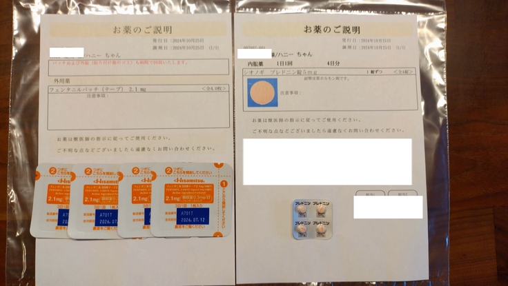 フェンタニル系統(今使っている麻薬パッチの成分)の痛み止め頓服出すので、痛みが酷いようであれば併用をする話にもなった。