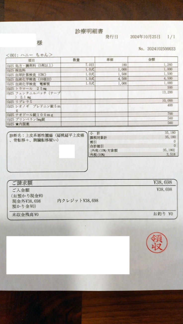 病院では腎機能、肝機能とも特に血液検査の数値は問題ないと言われてたけど…膀胱炎とかでこんなに酷い血尿って出ることあるのか?まさか、膀胱や尿管にも転移していて腫瘍が破裂したんじゃないか?とか最悪のことを考えてしまった😢