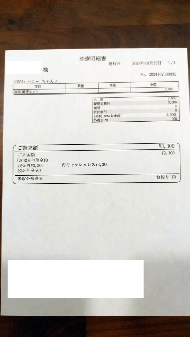 膀胱炎だったら、おしっこをたくさん出したほうがいいので、お水をスプーンで強制給水しながら、22時半くらいに点滴処置もした🥺