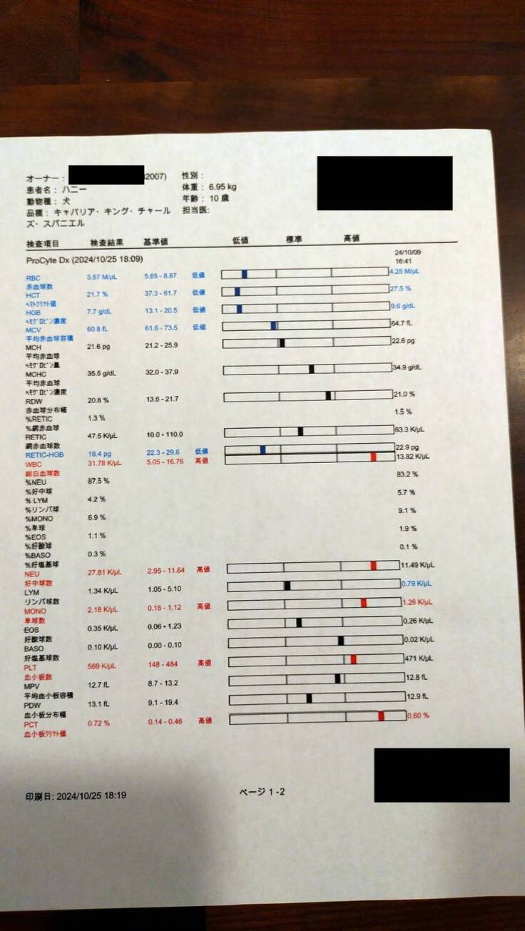 家に到着してからすぐにおトイレに行ったハニー、おし20時半くらいだったが、まさかの、血尿がすごい!!
