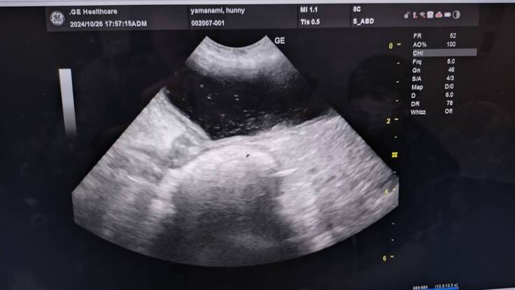 エコー写真→キラキラ白く写っているのが菌、脂肪や結石様のもの浮遊物