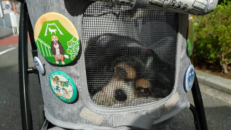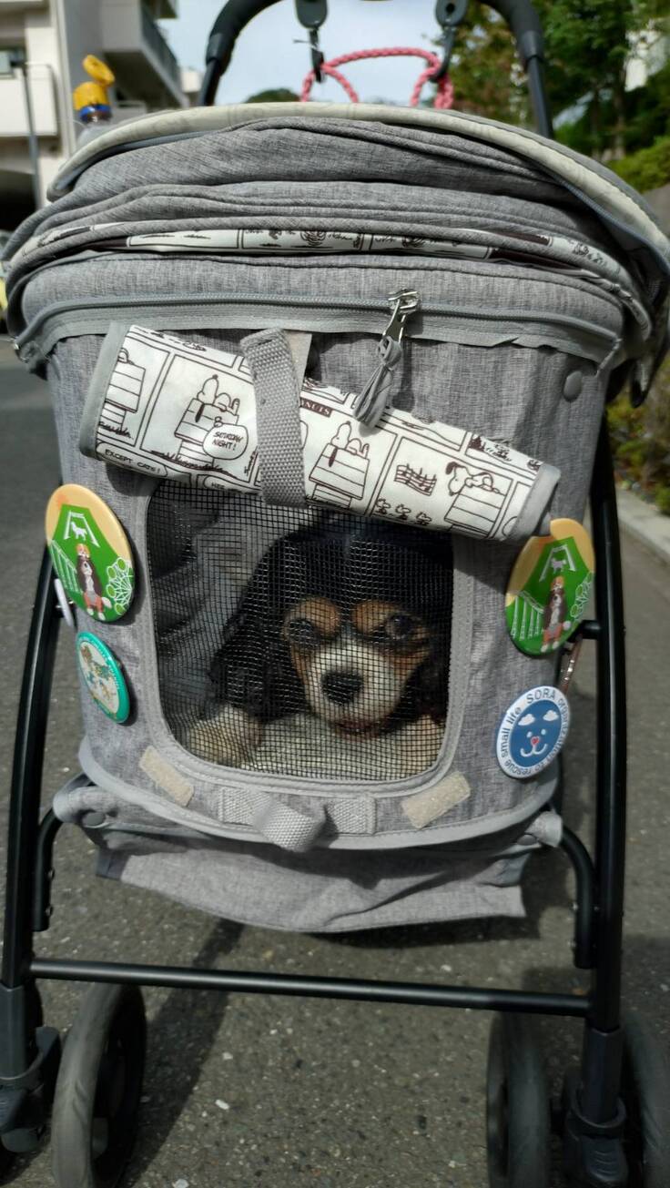 ハニーは2〜3メートルくらい歩いておしっこしてカートへ。