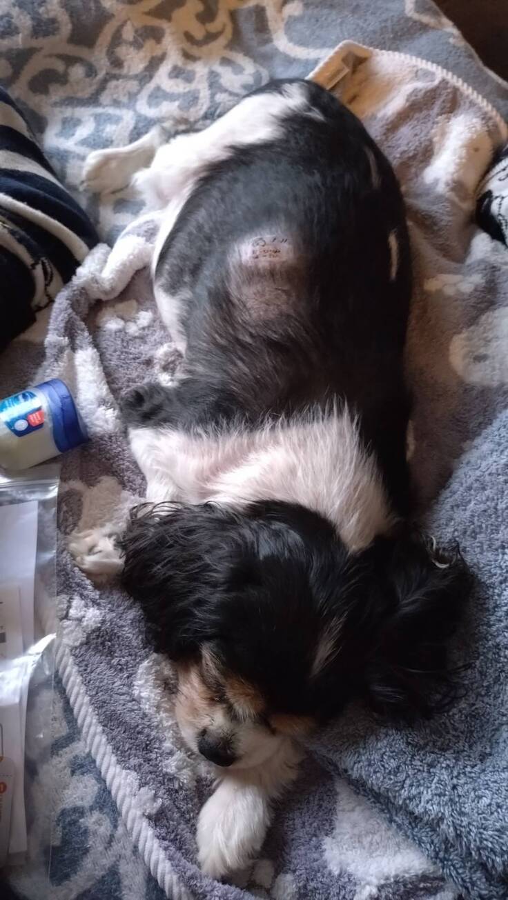 ご飯後は麻薬パッチ効いてきたのかインスタライブ21時からの間もずっと寝ていたハニー🐕️