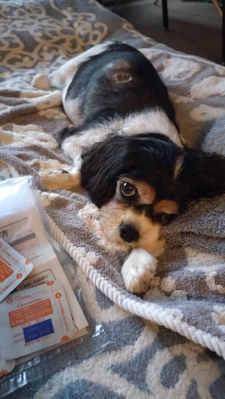 足が相当痛いようで、ずっと足をあげて震えたりしてた。15時頃麻薬パッチを1日ズレで2枚目分を貼り替えた!