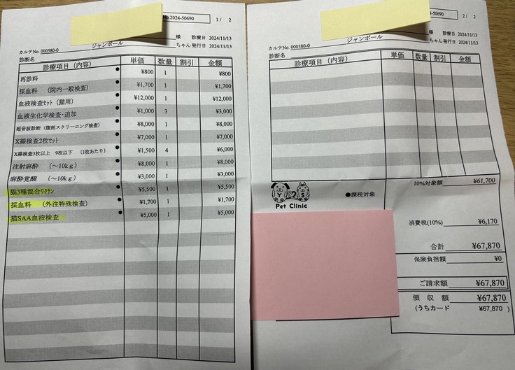 11/13は経過観察中の2回目の検査でしたが、どこも異常なしという結果で、本当に安心しました🥹体内のウイルスはしっかりと抑えられているようです。今回もジャンポールは、動物病院でかなり暴れてしまいました。動物にとっては何度経験しても検査は怖いものですね…。次回の検査は年明けになります。