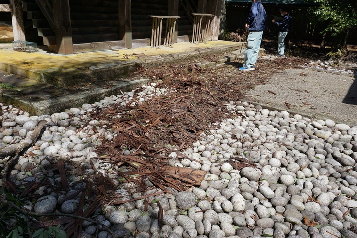 【本殿屋根から落ちた檜皮(令和4年3月下旬頃)】
