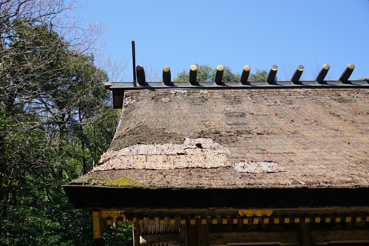 大雪被害を受けた令和4年の春、雪解け後に、本殿屋根の下に落ちた大量の檜皮を見て関係者一同、途方に暮れておりました。