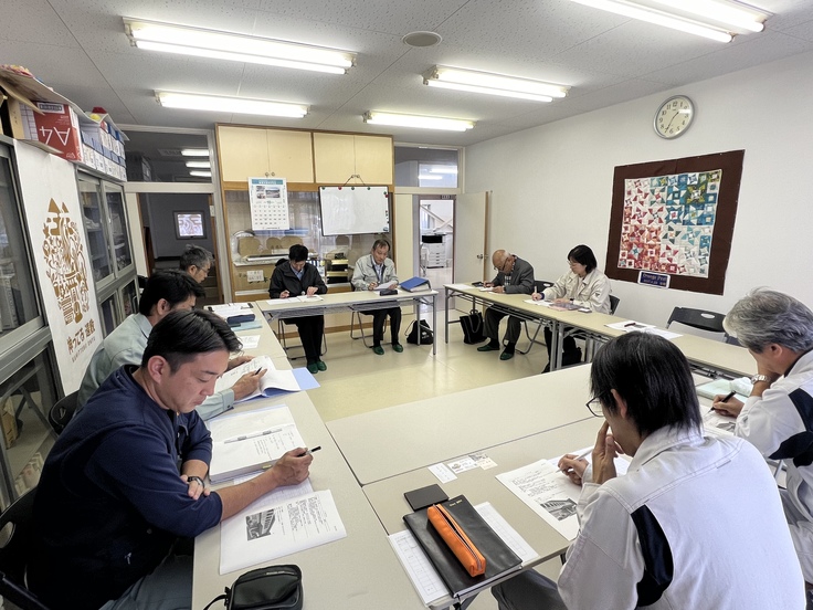 設計者、施工者、福井県文化財担当者、小浜市文化財担当者、神社関係者で、今後の予定の確認と、現場の状況を改めて確認しました。