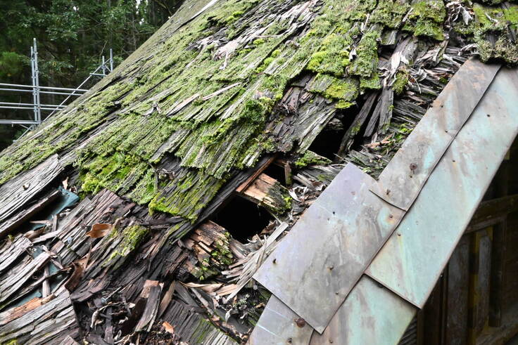 新しい檜皮は4月頃から葺きはじめ、9月末の完成を目指します。