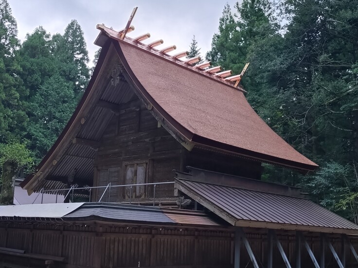 60年ぶりの若狭彦神社本殿屋根修復工事、仮設である素屋根が解体され、拭き替えられた檜皮屋根をご覧いただけるようになりました。