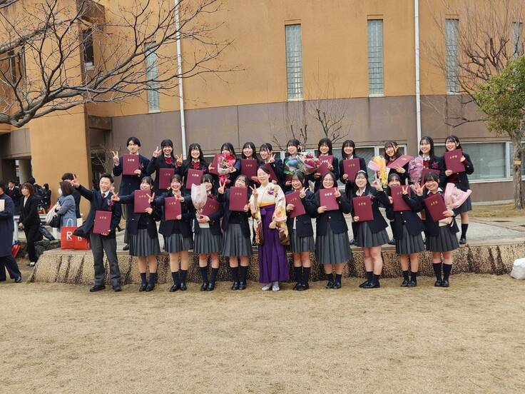 2月28日(金)、立命館守山高等学校にて卒業証書授与式が行われ、吹奏楽部23名も無事に卒業の日を迎えました。 これまで支えてくださった皆様への感謝の気持ちを胸に、それぞれが新たな道へと歩みを進めていきます。