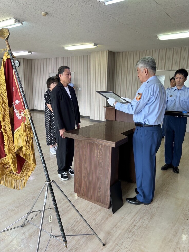 7月の大雨災害で土砂崩れ現場で身動きが取れなくなっていた地元の女性を救出して、最上広域市町村組合消防本部より9月12日頃に感謝状を表彰されました。