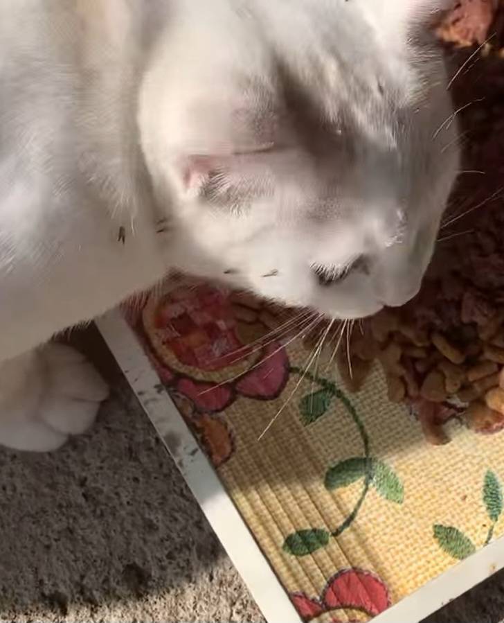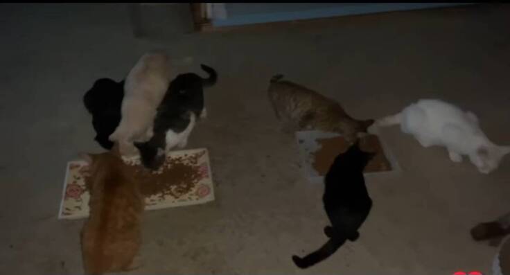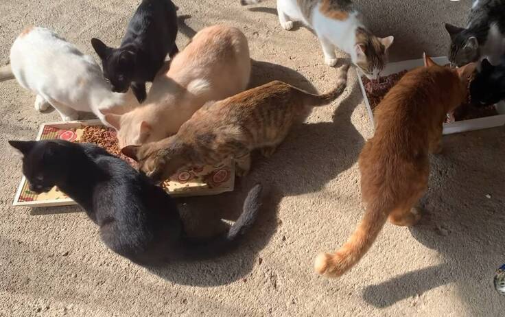 お腹がすいている猫ちゃん達は暗い中でも勢いよくご飯を食べていました。