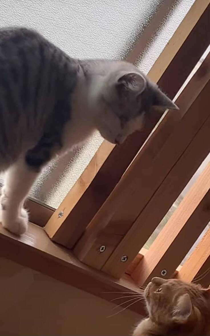 あかりちゃんはケージの中なので白猫の大福くんか3兄弟の誰かなのですが、今日は特定が出来ませんでした。