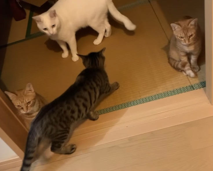 中の子達もまだかと待ち構えていて珍しい事なのですが白猫の大福くんと3兄弟が入り口までお出迎えしてくれました。