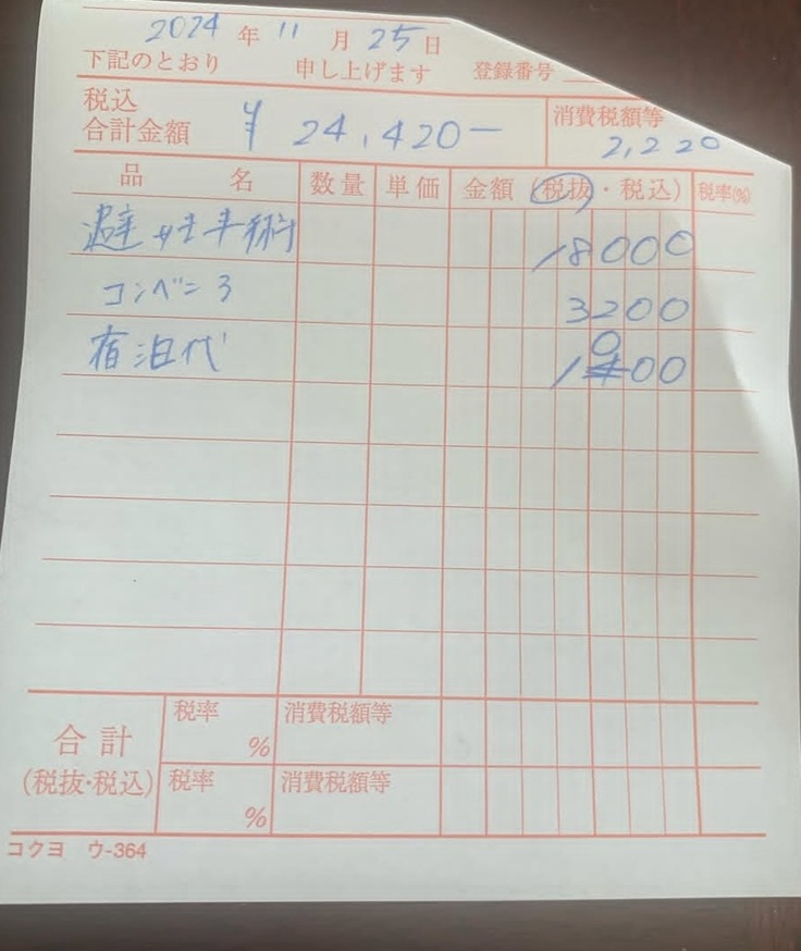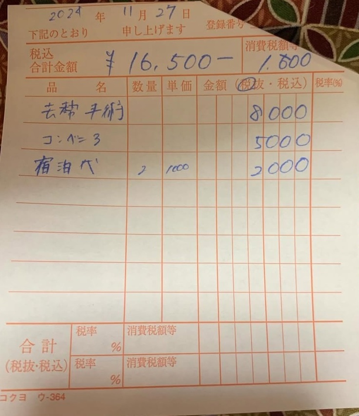 (白ちゃんの手術の領収書)