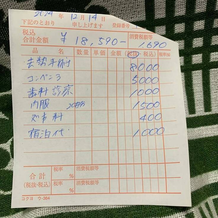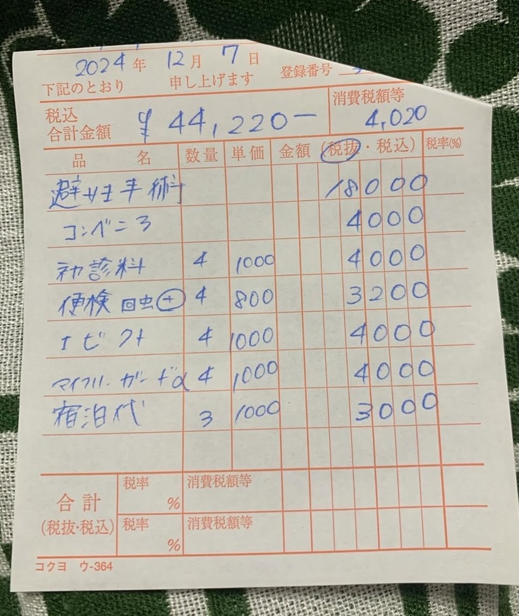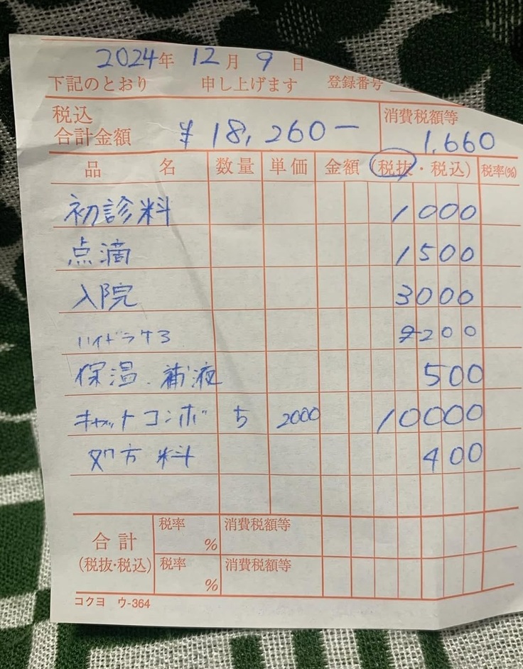 まとめてにはなりますが2匹のTNRと子猫ちゃんの病院代などの領収書を載せさせて頂きます。
