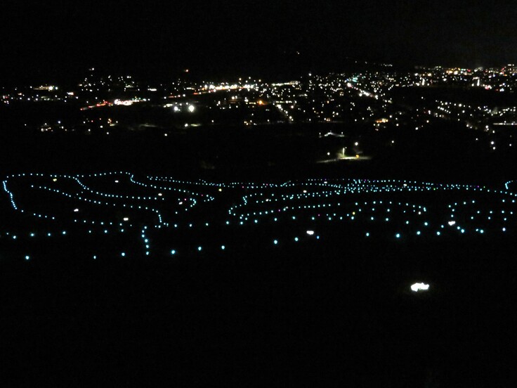 12/6幻想的な棚田の光空間のペットボタルと眼下の善光寺平夜景 ぜひ歩いてみてください