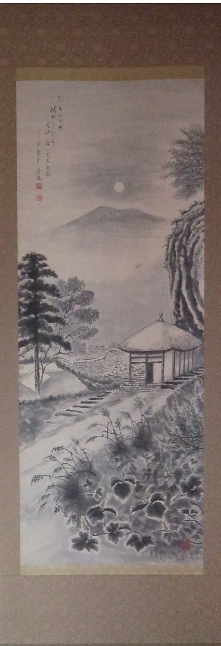 長楽寺月見殿の掛軸(鏡台山から上る月・月見堂・姨岩)