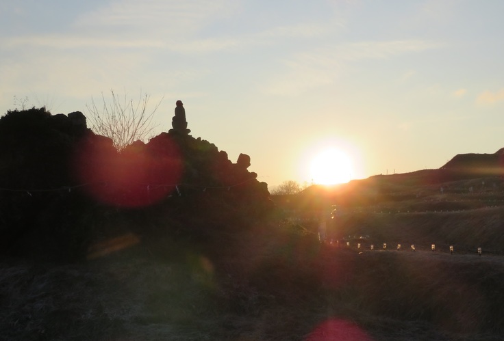 7.1.22棚田姪石の夜明けです 岩上の観音様も静かに見守っています