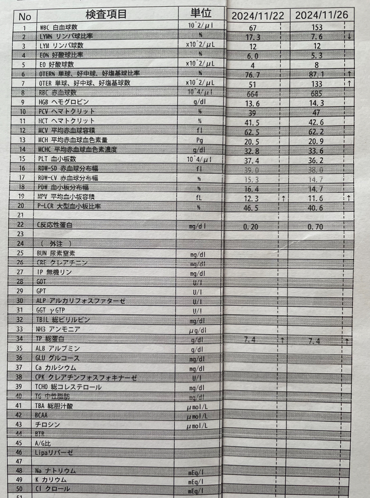 まめの今の体調、血液検査の結果が上向きになってきたので、予定を少し早め、金曜に次の化学療法をすることを決めてきました。