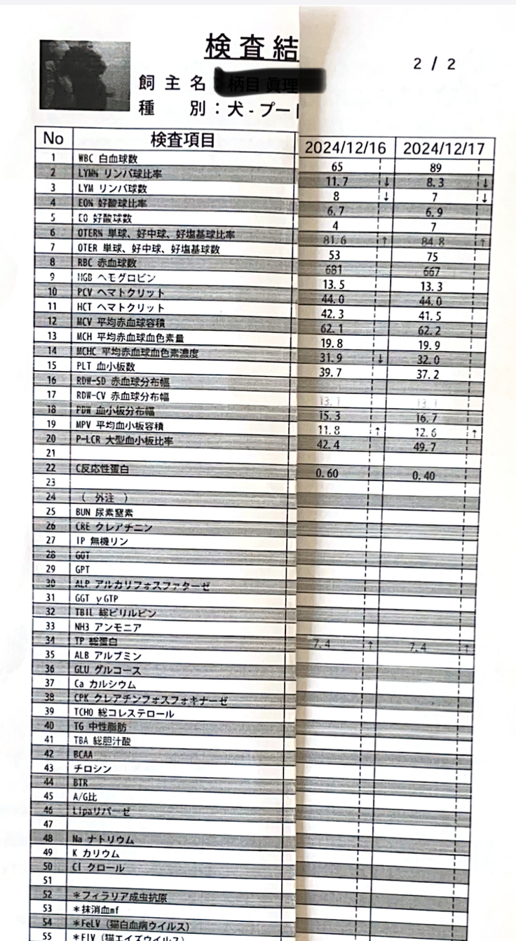 昨日の活動報告にある血液検査結果と明細が、前日の画像になっていました。