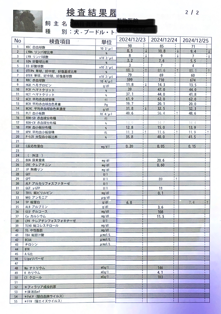 血液検査は、抗がん剤の影響が大きく出たところはありませんでした。