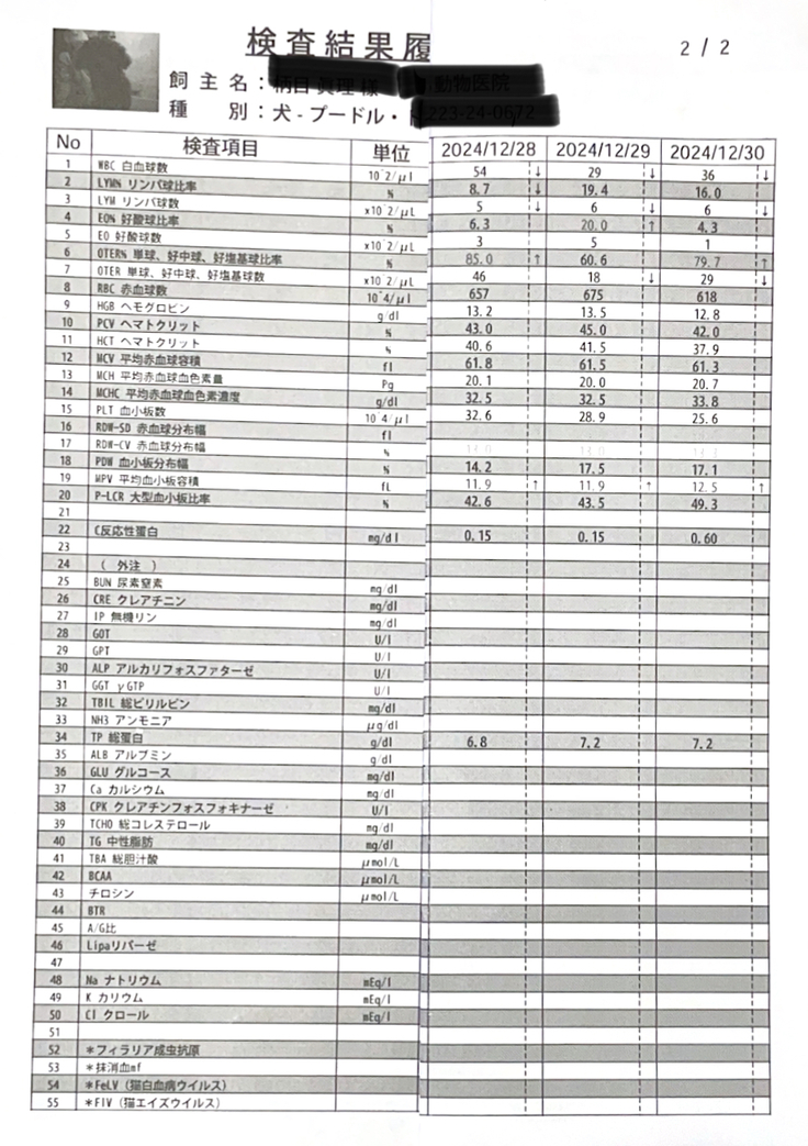 今のまめ丸は、ウイルスや細菌と戦うことごできないレベルの白血球数なので、とにかく安静にして回復を待つしかありません。