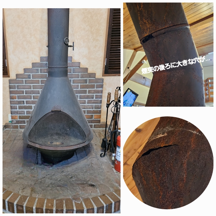 寒くなってきたので点検すると…煙突の裏側に大きな穴が...