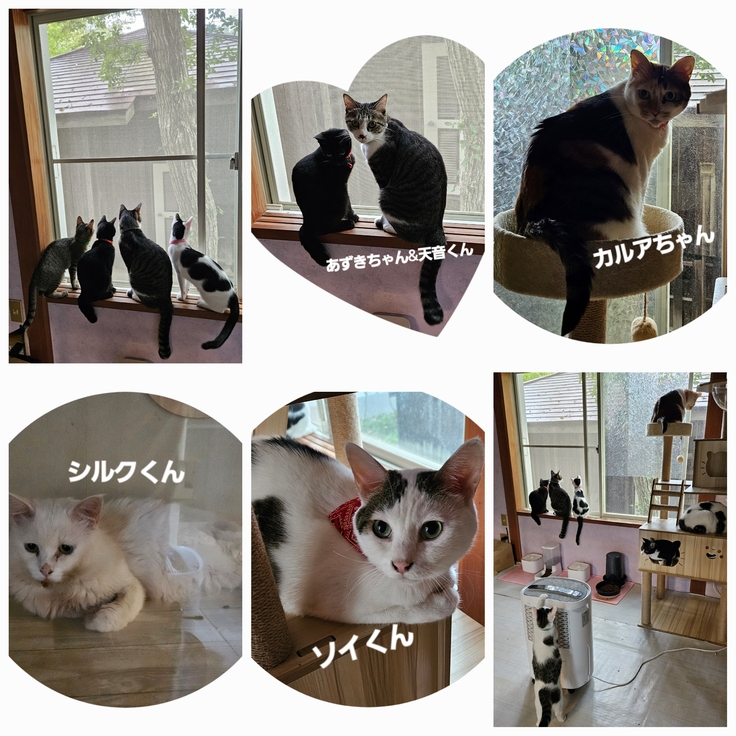 今日も🐱たちの朝窓を開け、新鮮な空気を取り込み中整列…🐱