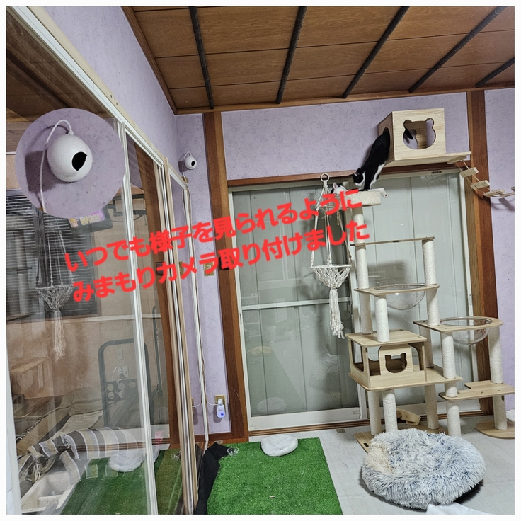 猫たちのお部屋にみまもりカメラ取り付けました…