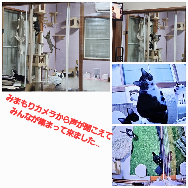 音声機能で、呼び掛けると全員集合に…🐱
